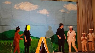 10月25日(土)に学習発表会を行いました。今年の演目は、幼稚部が「あかずきん」、小学部は「あらしのよるに」、中学部は「めんどうくさい・・・」でした。幼稚部3名、小学部6名、中学部2名の子どもたちが、それぞれの学部で練習に一生懸命取り組みました。