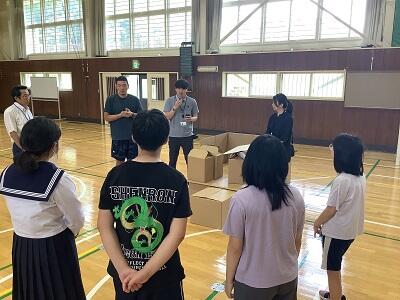 小高・中学部は「なまずのクイズ」や「段ボールベッドの組み立て」に挑戦しました。また、幼稚部・小低は「紙芝居」と「段ボールベッド」の組み立てに挑戦しました。