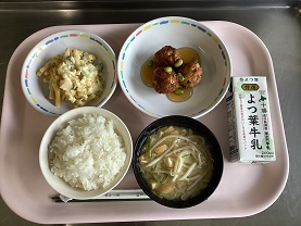 ごはん・かきたま汁・チキン照り焼き・酢みそ和え