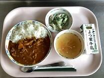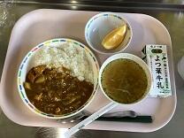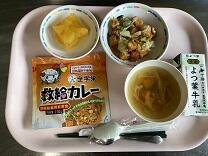 救給カレー・コンソメスープ・厚揚げサラダ・甘夏缶ゼリー
