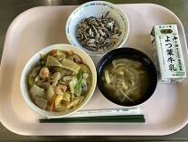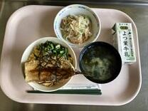 牛乳・白菜のみそ汁・ホッケのカレー唐あげ・かぼちゃのあんかけ