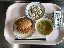 照り焼きハンバーガー・春雨スープ・わかめサラダ