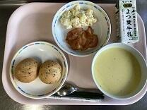 ごまロール・コーンポタージュ・鶏肉のマーマレード焼き・ポテトサラダ
