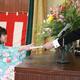 まず始めに、2歳児のひよこ組終了のセレモニーを行いました。子供たちは、校長から終了証と花束を受け取り、嬉しそうな表情でした。